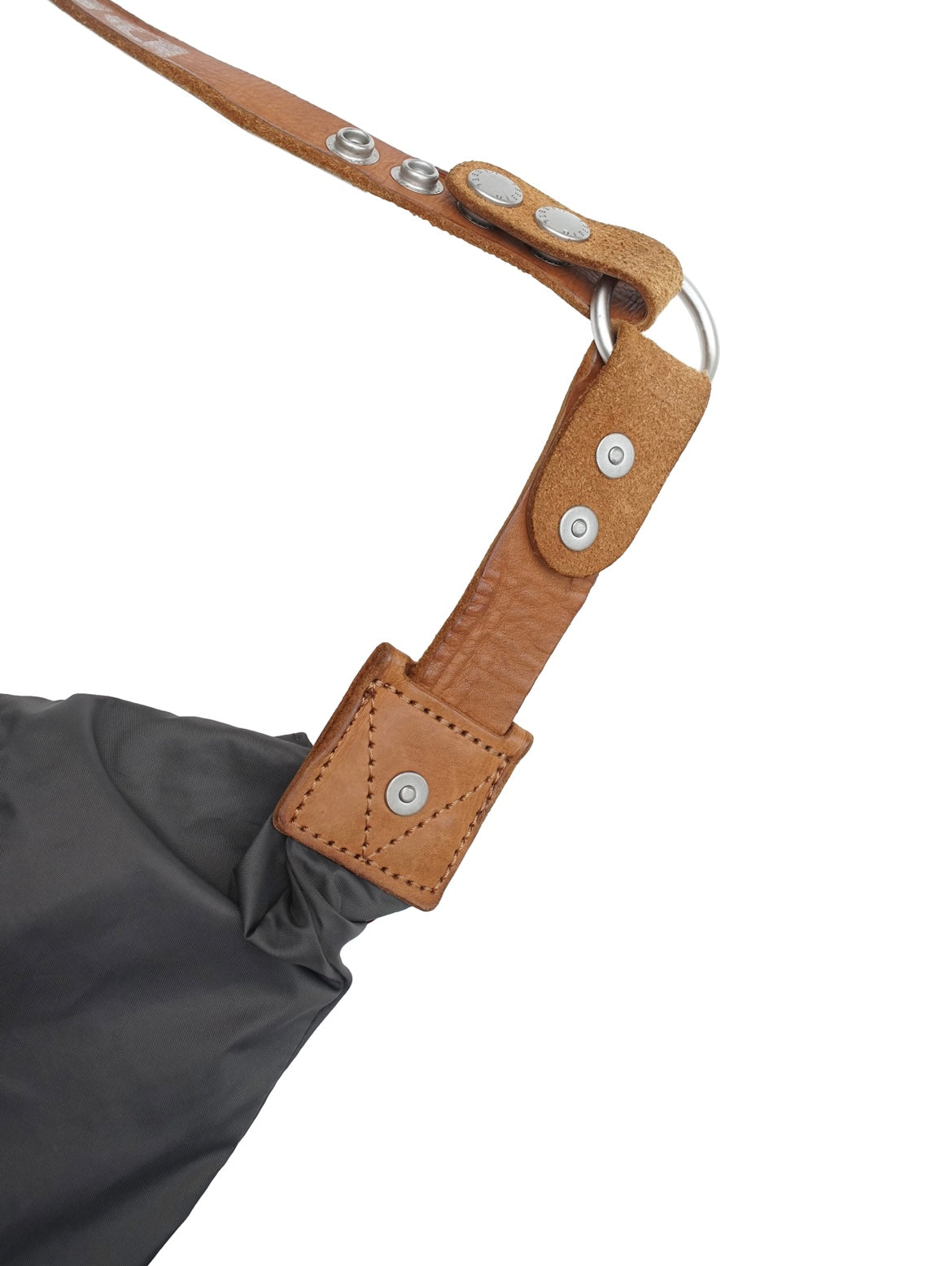 コンパクトなサイズ、体に沿うような柔らかい質感のナイロン。調整可能なストラップでワンショルダーでもクロスボディでも。
