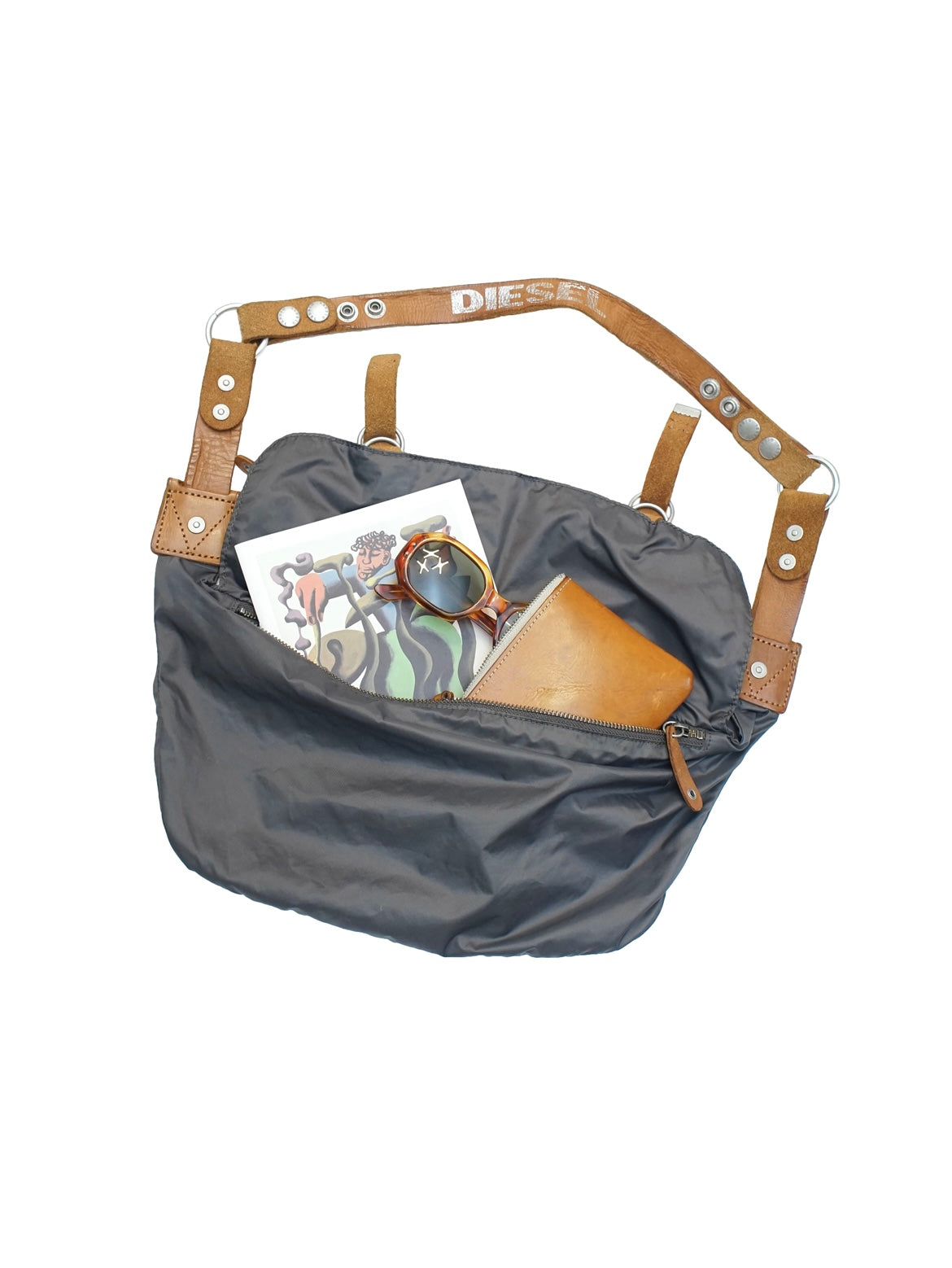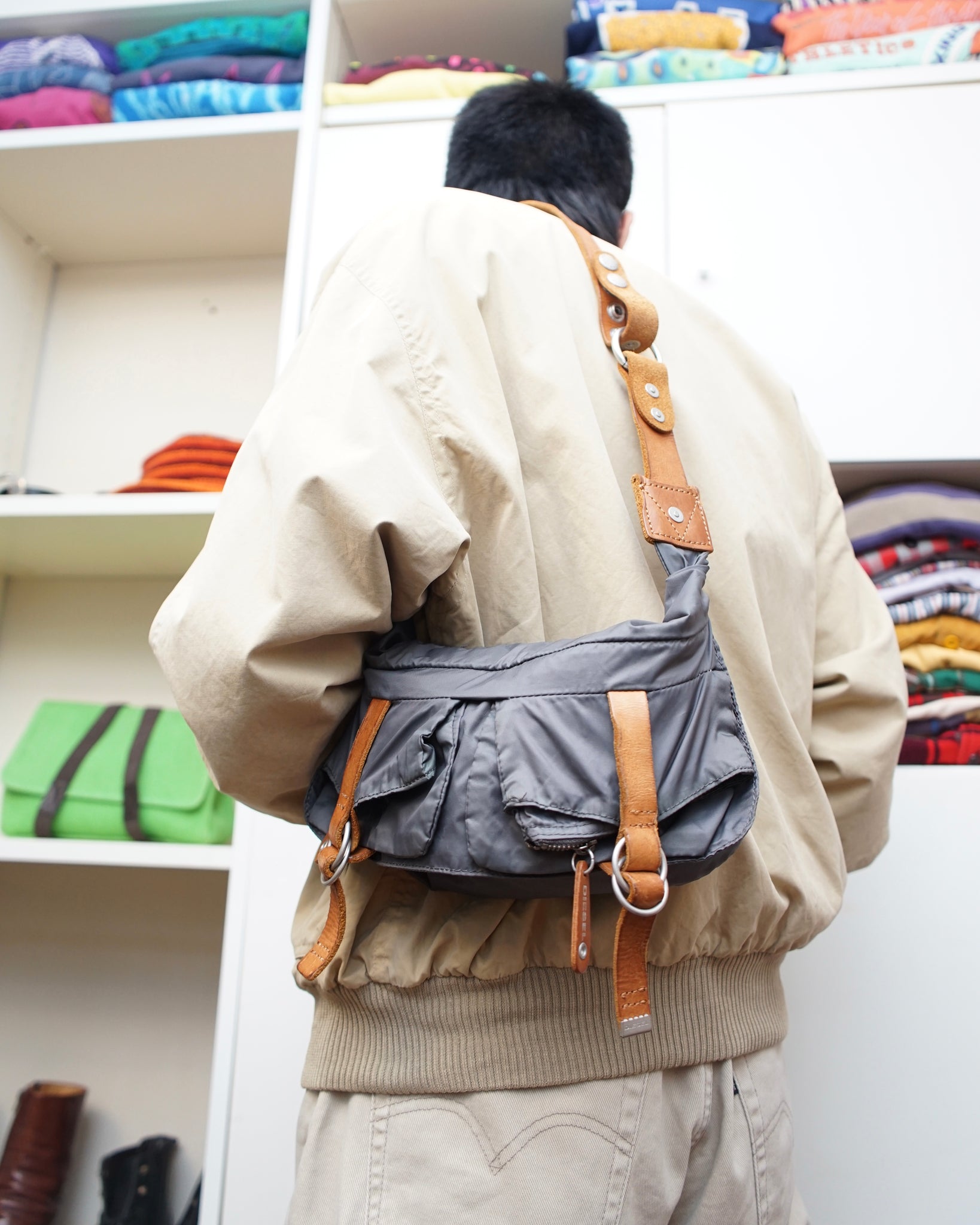 テクニカルな印象のグレーナイロンにレザーパーツのイナタいバランスは90~00辺りのDIESELならでは。