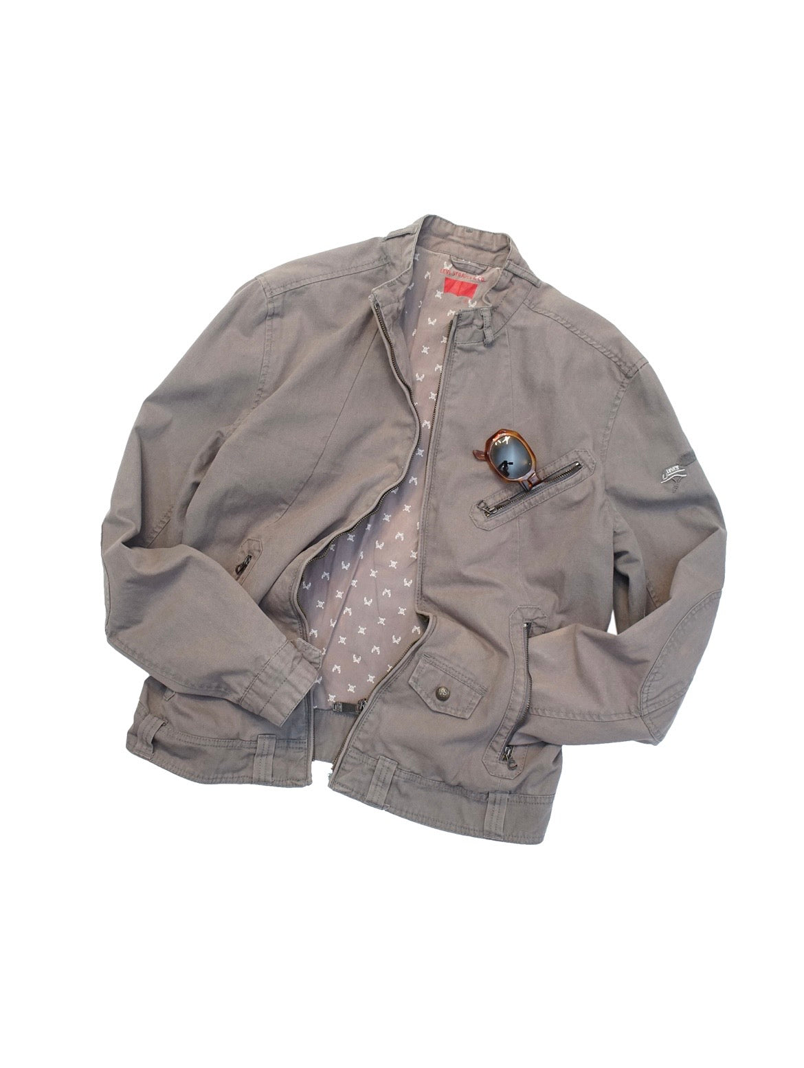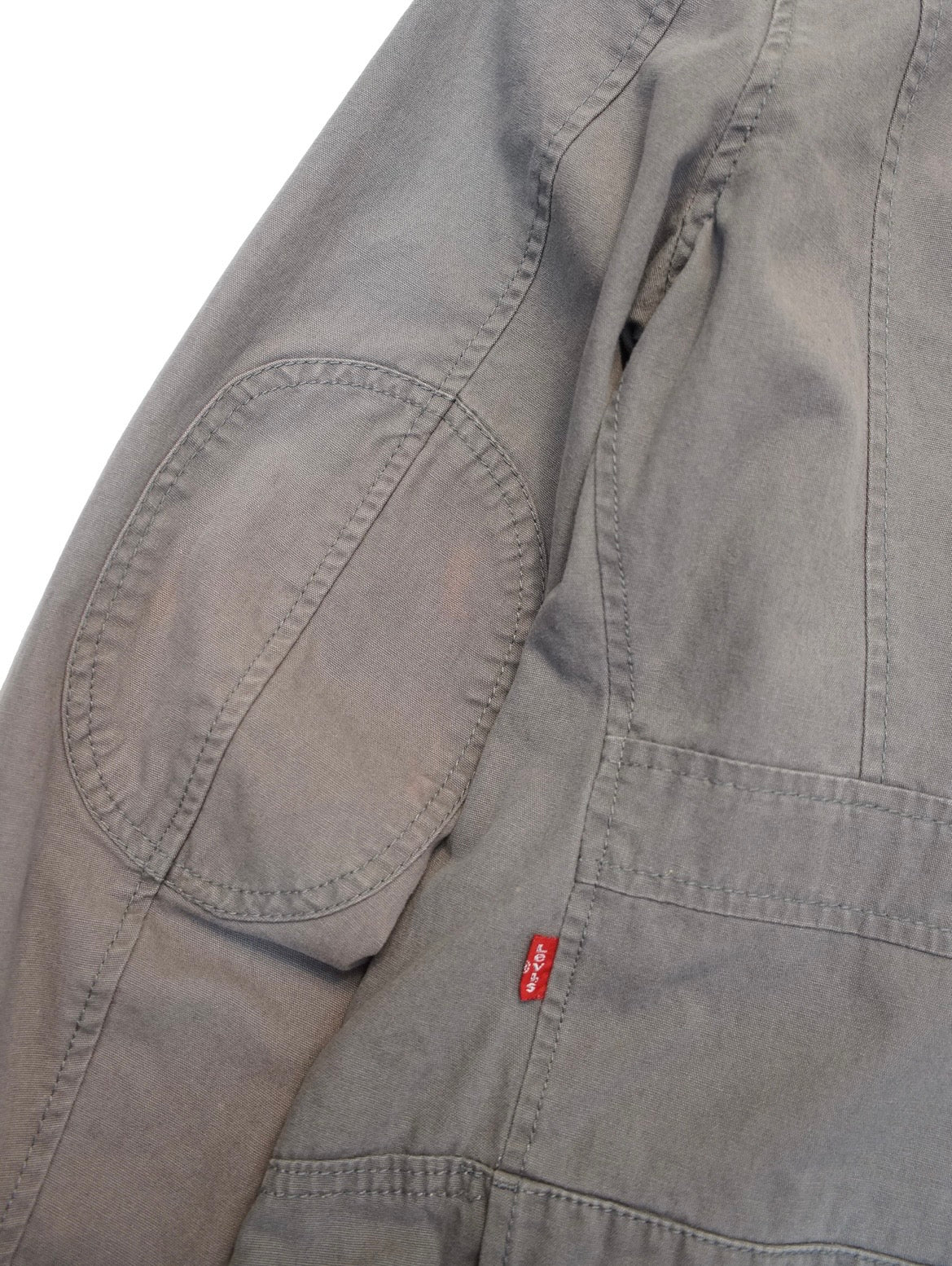 左袖には羽のついたヘルメットの刺繍、小さいフラップポケット、斜めについたジップオープンの胸ポケット、エルボーパッチ。細かいデザインはなんともユーロリーバイスらしい遊び心。