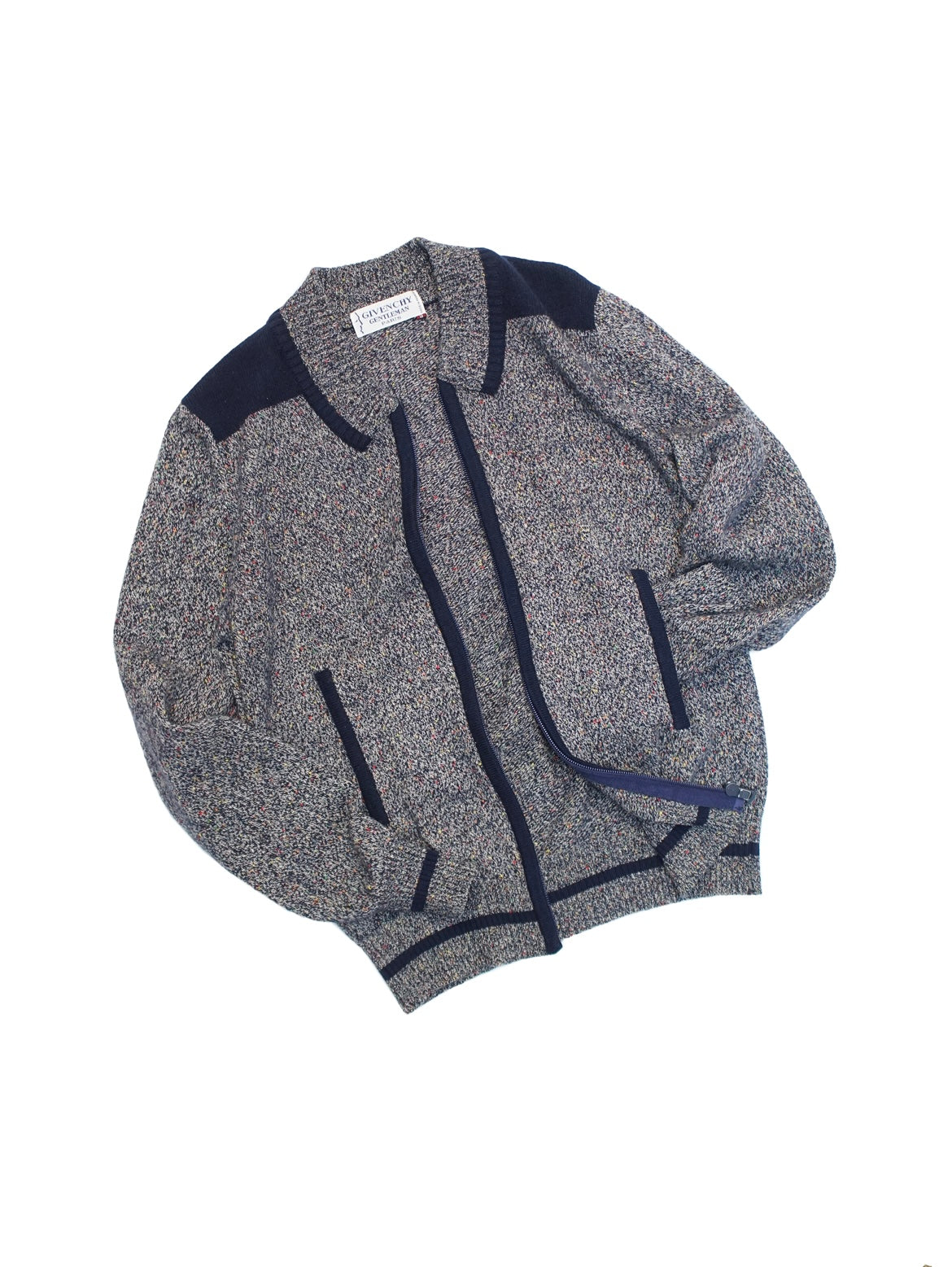 70~80'S "GIVENCHY" FAKE COLLAR ZIP UP KNIT CARDIGAN