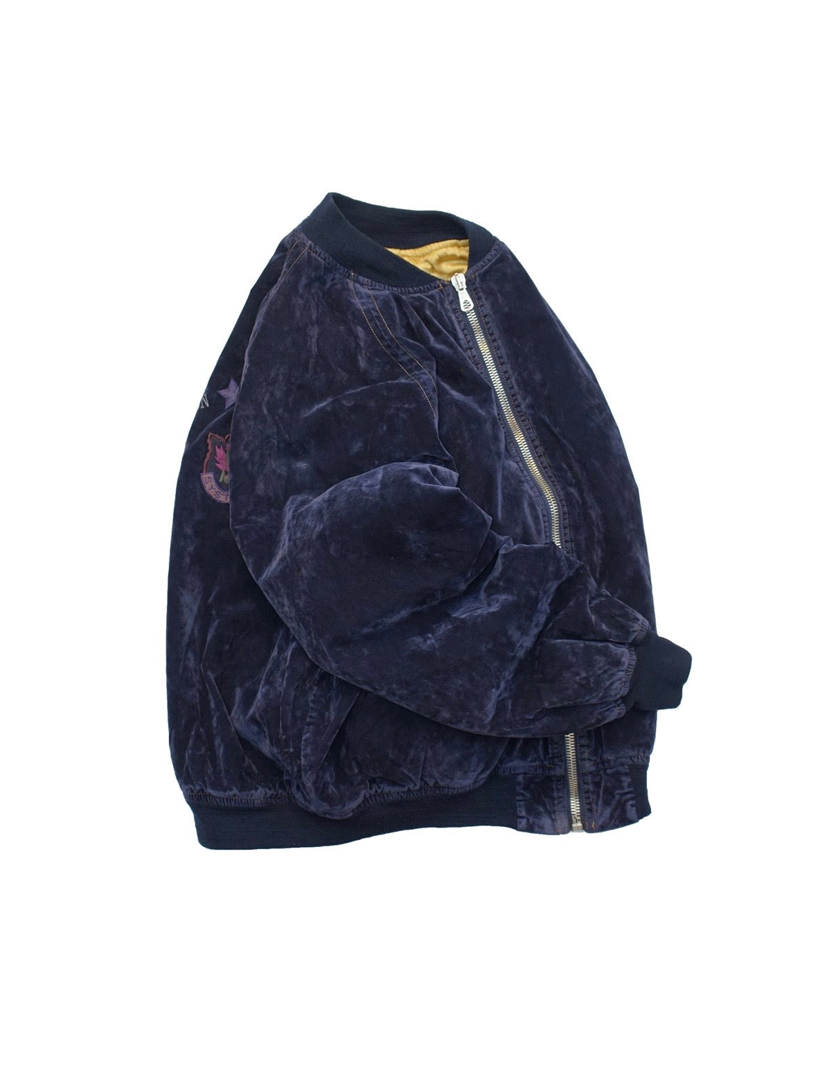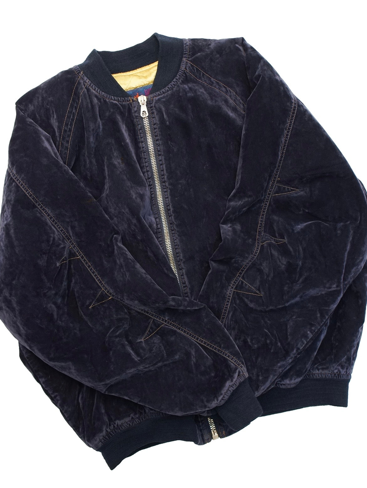 ベロアという素材感や、フラップポケットのボタン、フロントのLAMPOジップなど見る人が見ればUS物とは違うと感じる絶妙なポイント。