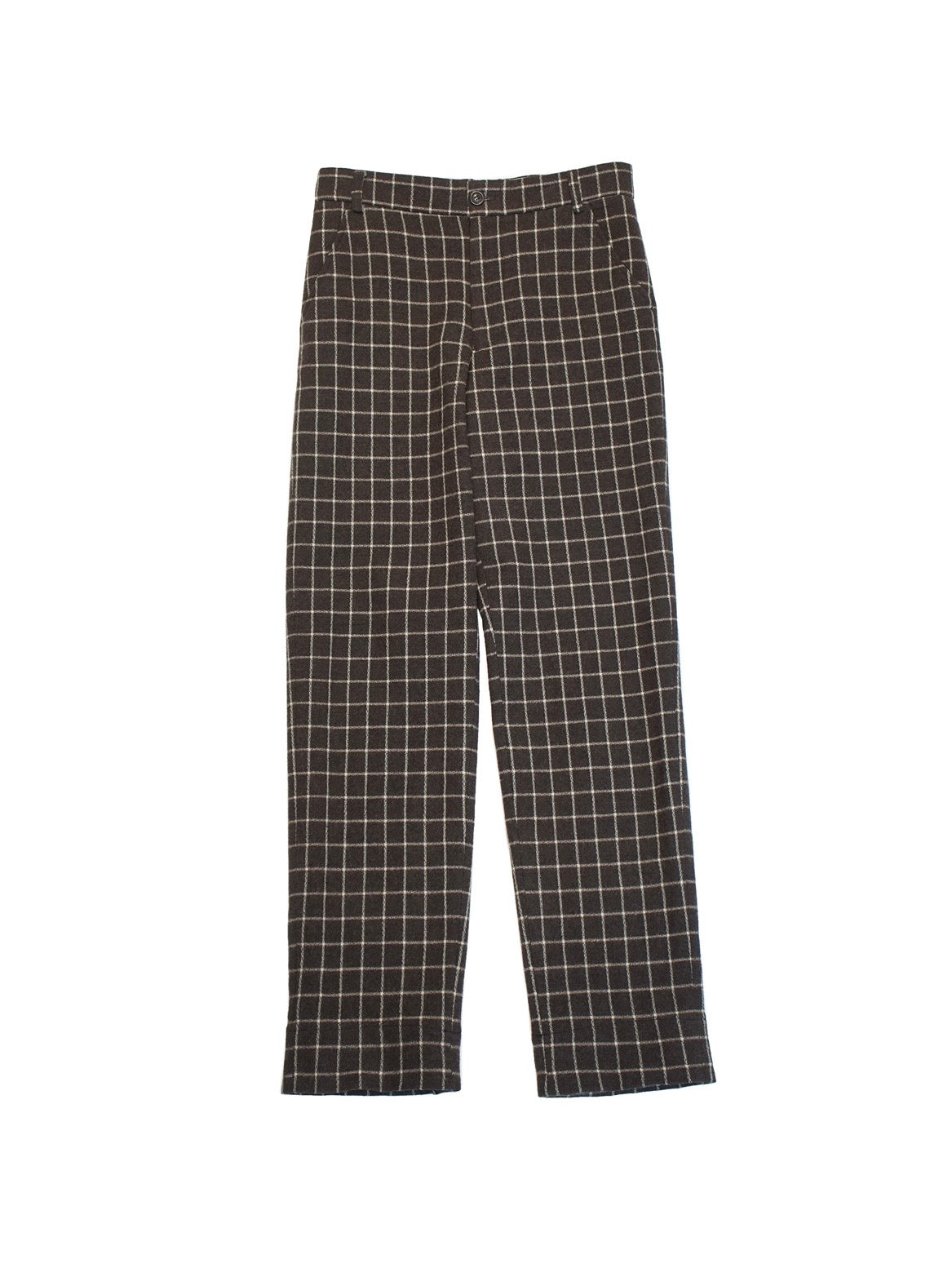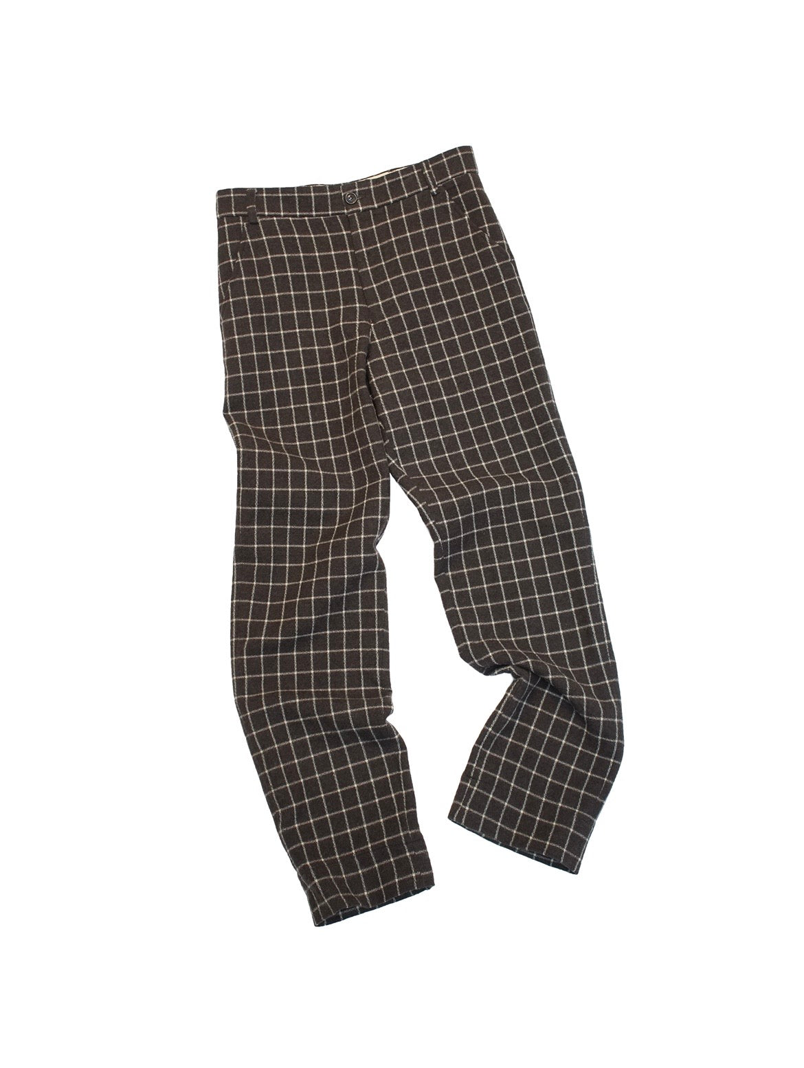 深い色味のチャコールブラウン。掠れたようなホワイトのチョークチェックパターン。