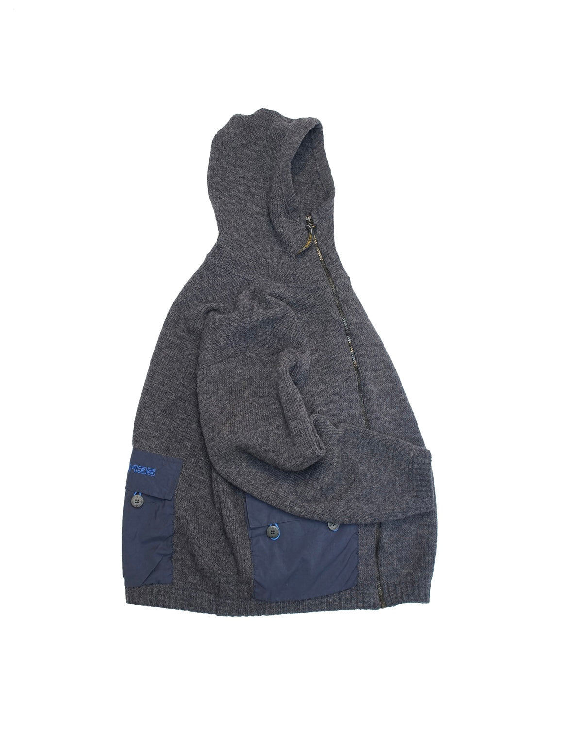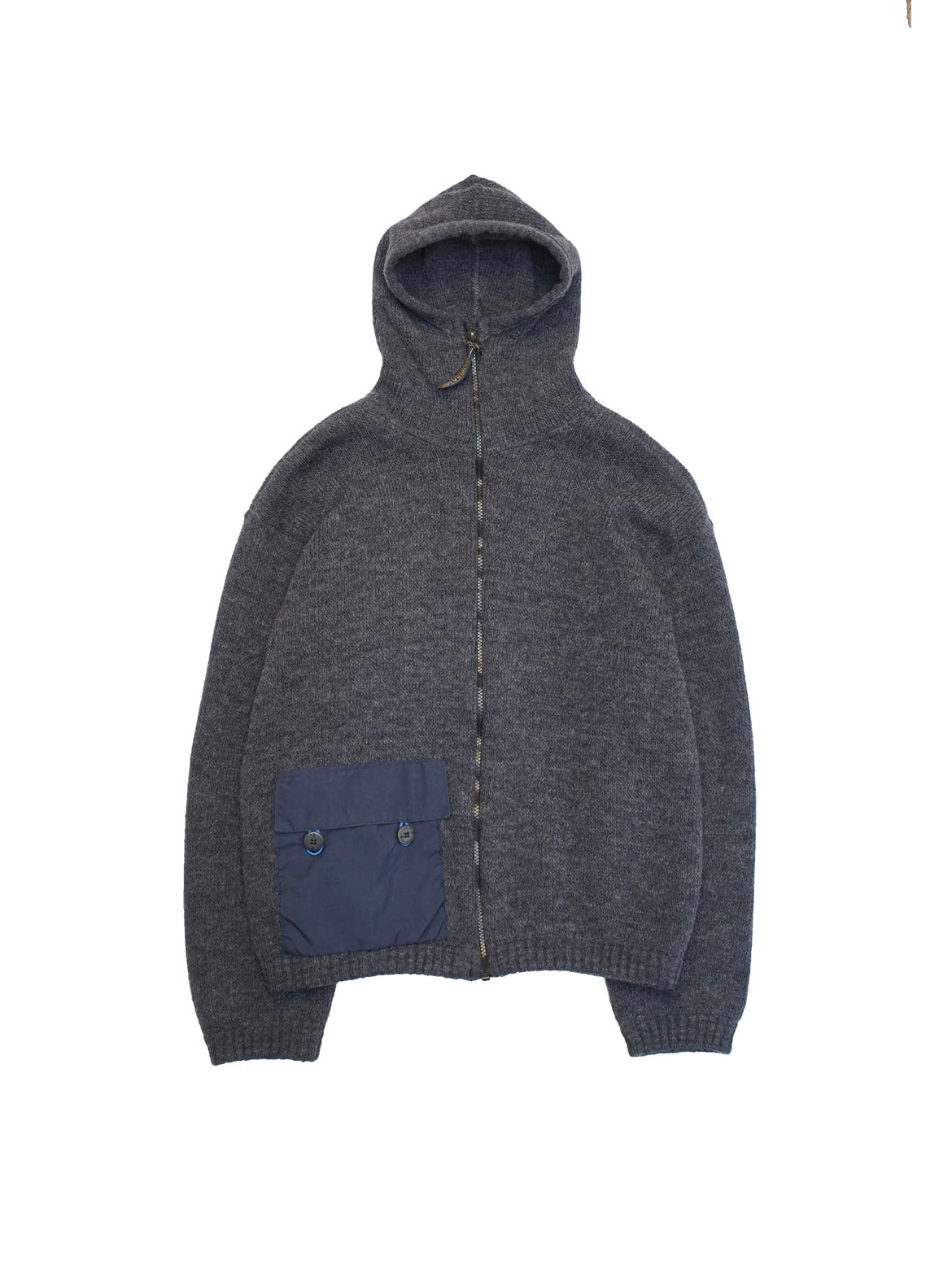 コンパクトなシルエットのジップアップニットフーディー。口元まで隠れるバラクラバフード仕様。