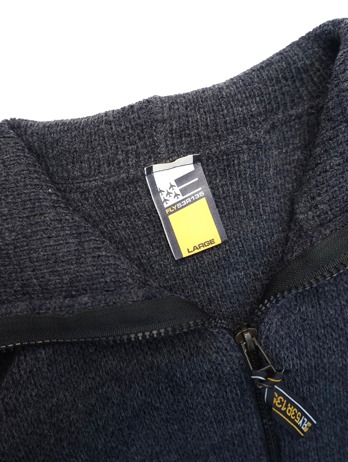 グレーネイビーの色味に肉厚なアクリルウールの弾力のあるニット生地。