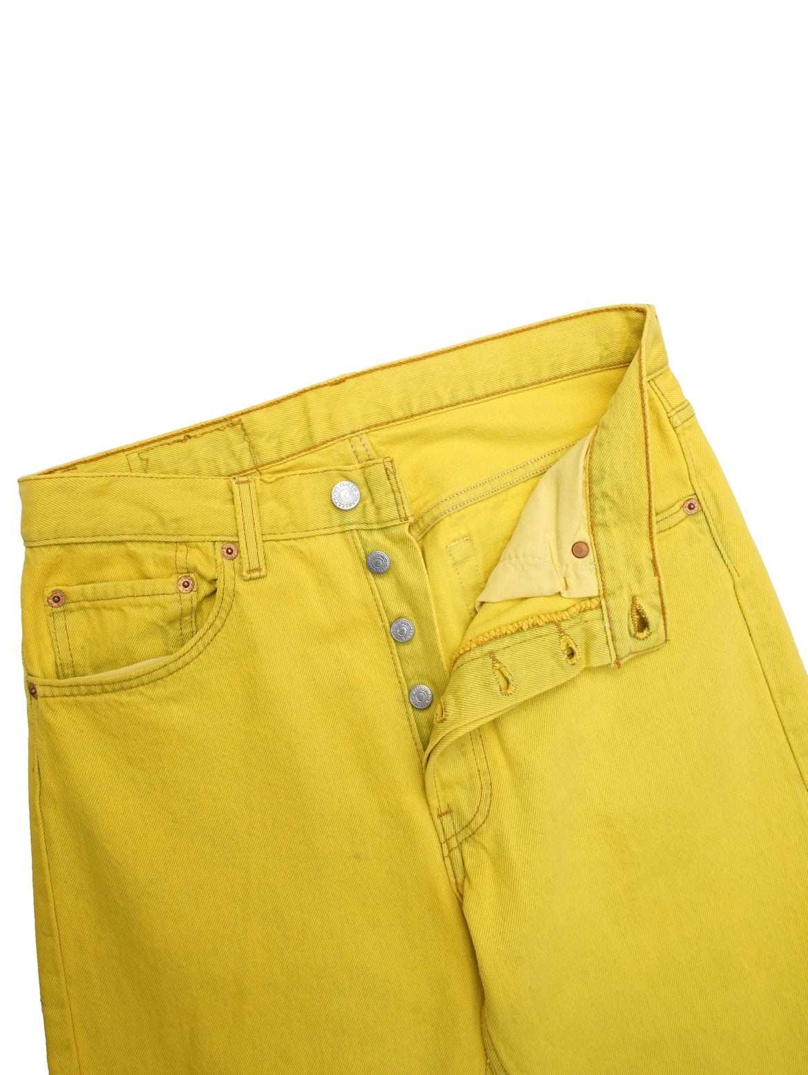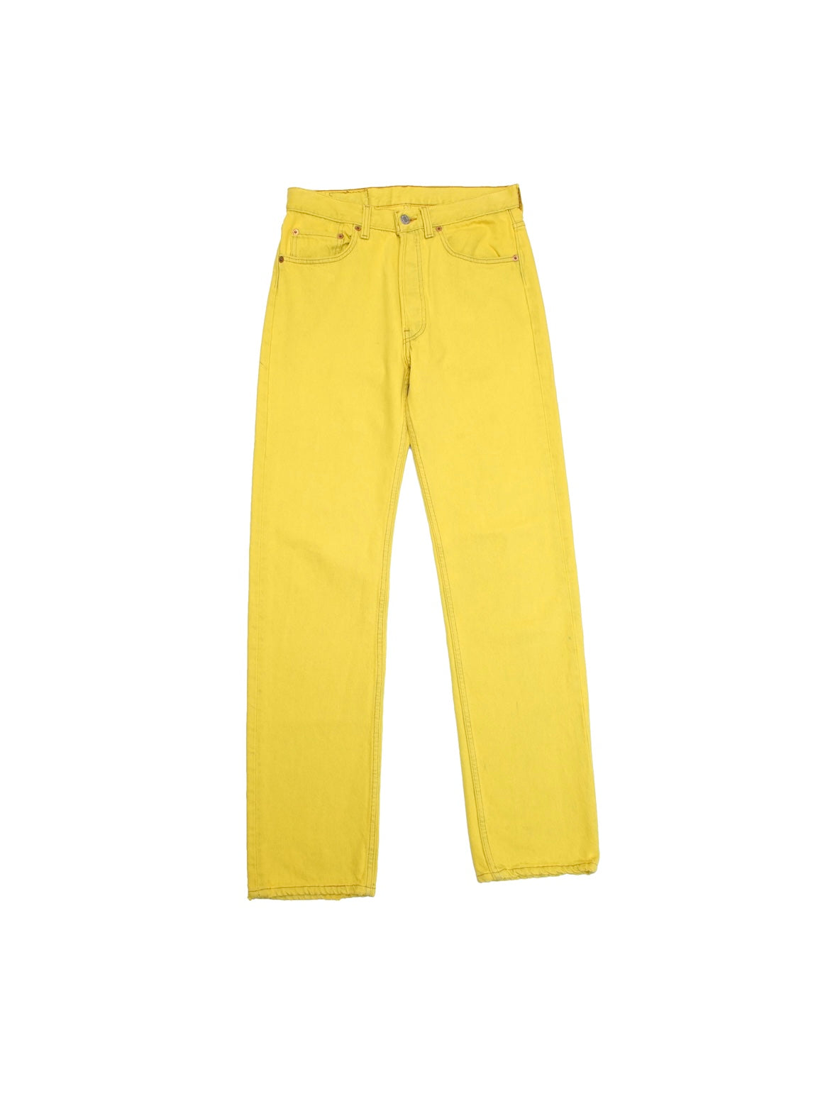 90年代のLevi's 501。元々アイスウォッシュのモデルですが、ビビッドなイエローに後染めされています。