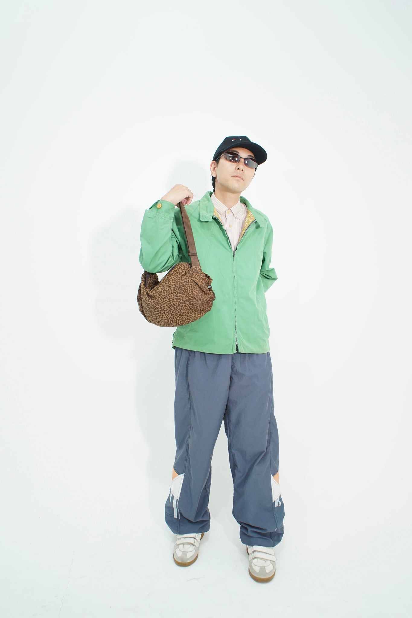 ウエストのセンターロゴやサイドの微妙に非対称な切り替え。90年代らしくも主張の強くない雰囲気。